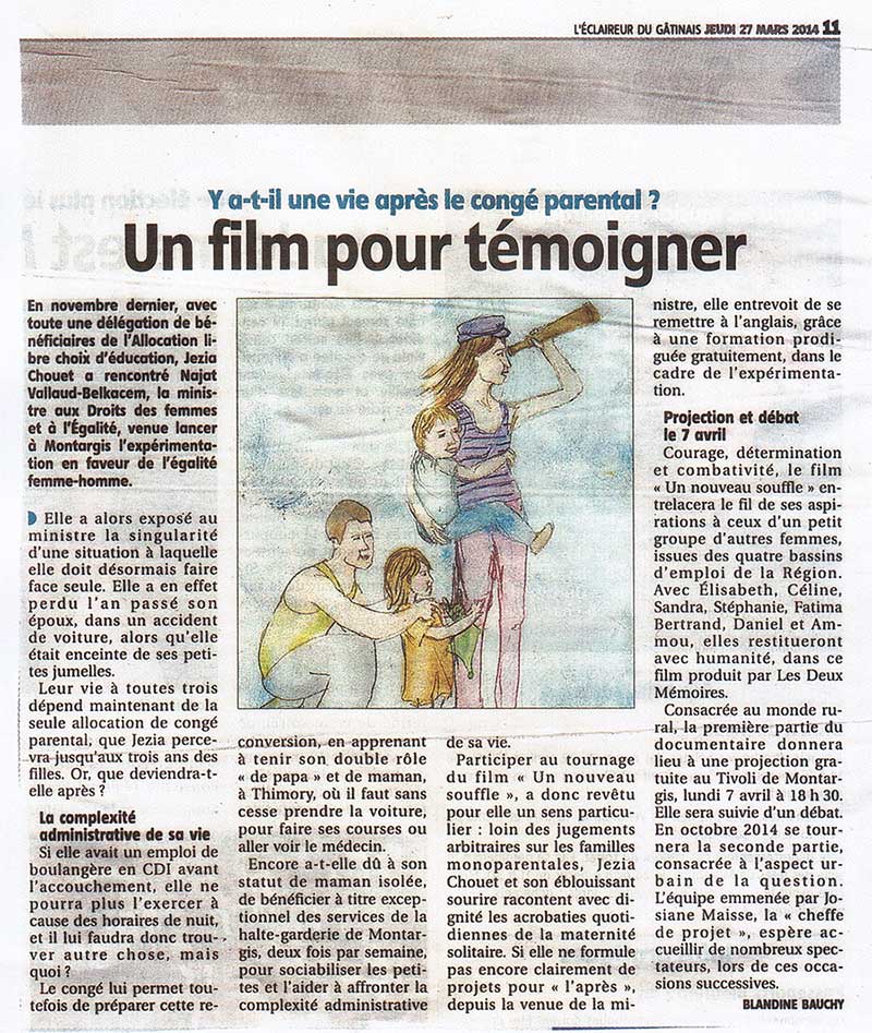 Y a-t-il une vie après le congé parental ? Un film pour témoigner (Article paru dans l’ÉCLAIREUR DU GATINAIS du Jeudi 27 mars 2014)